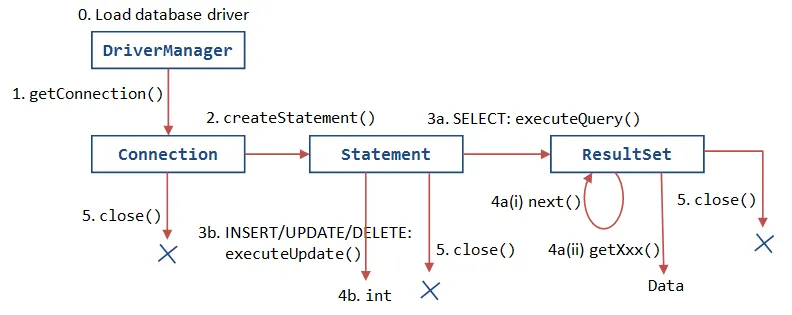 JDBC로 DB 작업을 수행하는 과정은 다음과 같다.